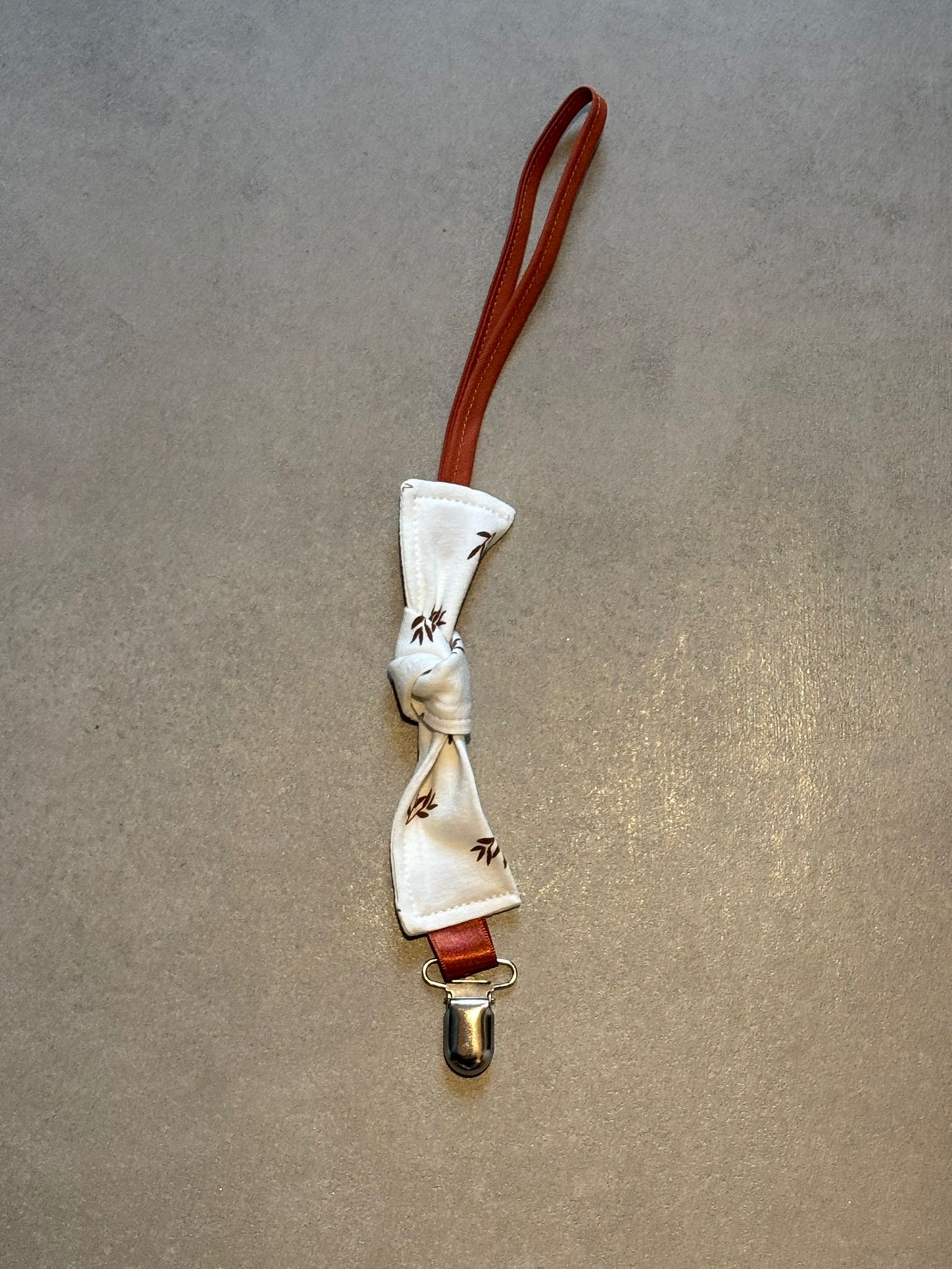 Attache tétine OEKO-TEX® – Feuilles brunes & sangle terracotta