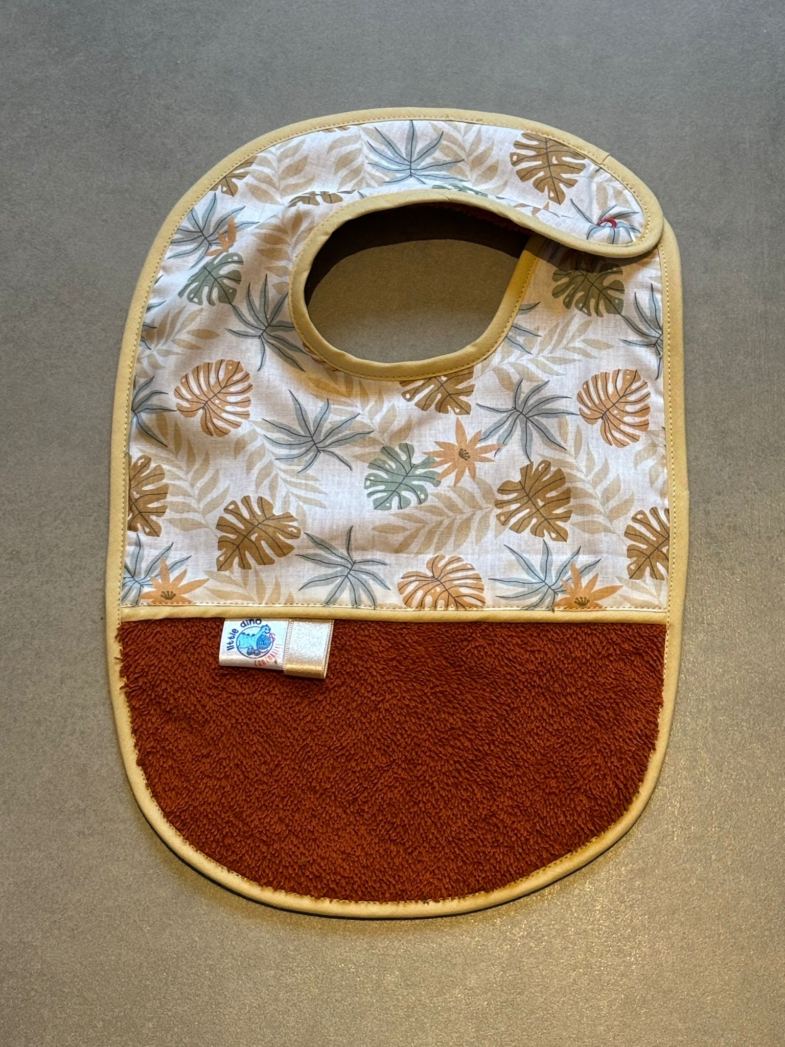 Bavoir OEKO-TEX® – Feuilles Tropicales Beige