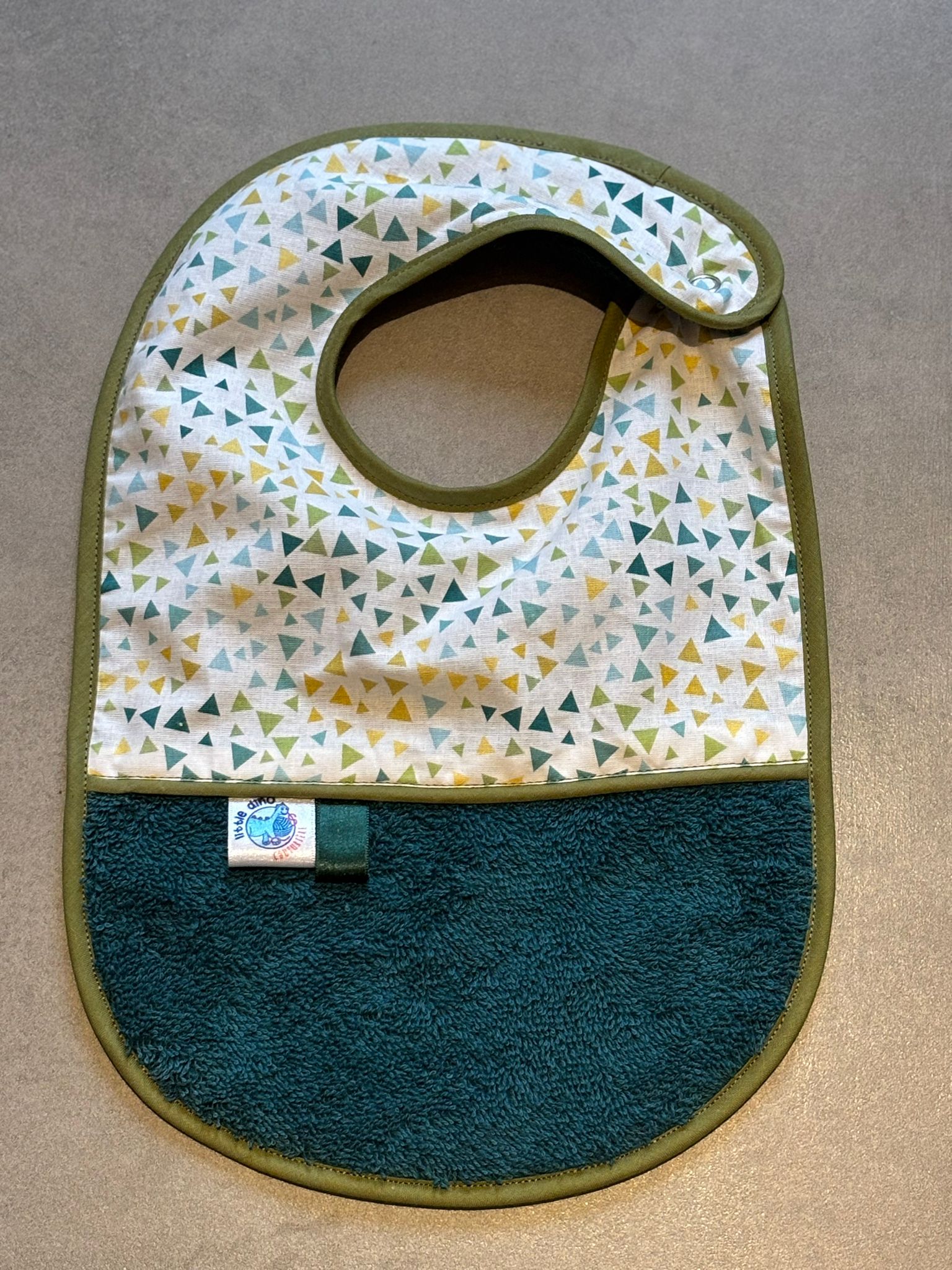 Bavoir OEKO-TEX® – Motif Triangles Kaki