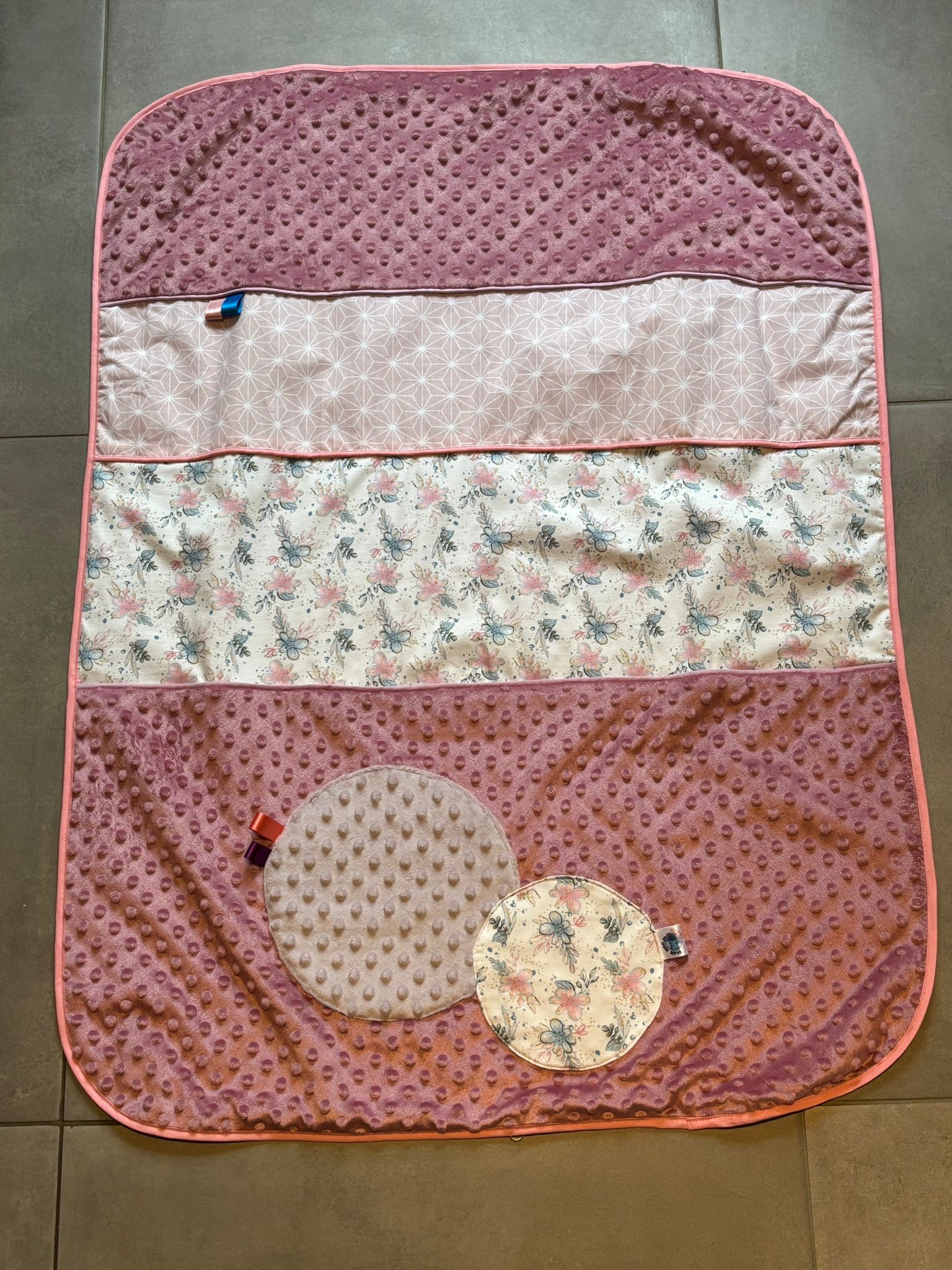 Cette couverture bébé en taille unique est confectionnée avec une face en coton imprimé et une face en minky tout doux OEKO-TEX®. Légère, chaude et réconfortante, elle accompagne bébé lors des siestes, des sorties ou des moments câlins. Un essentiel mêlant douceur, qualité et confort.