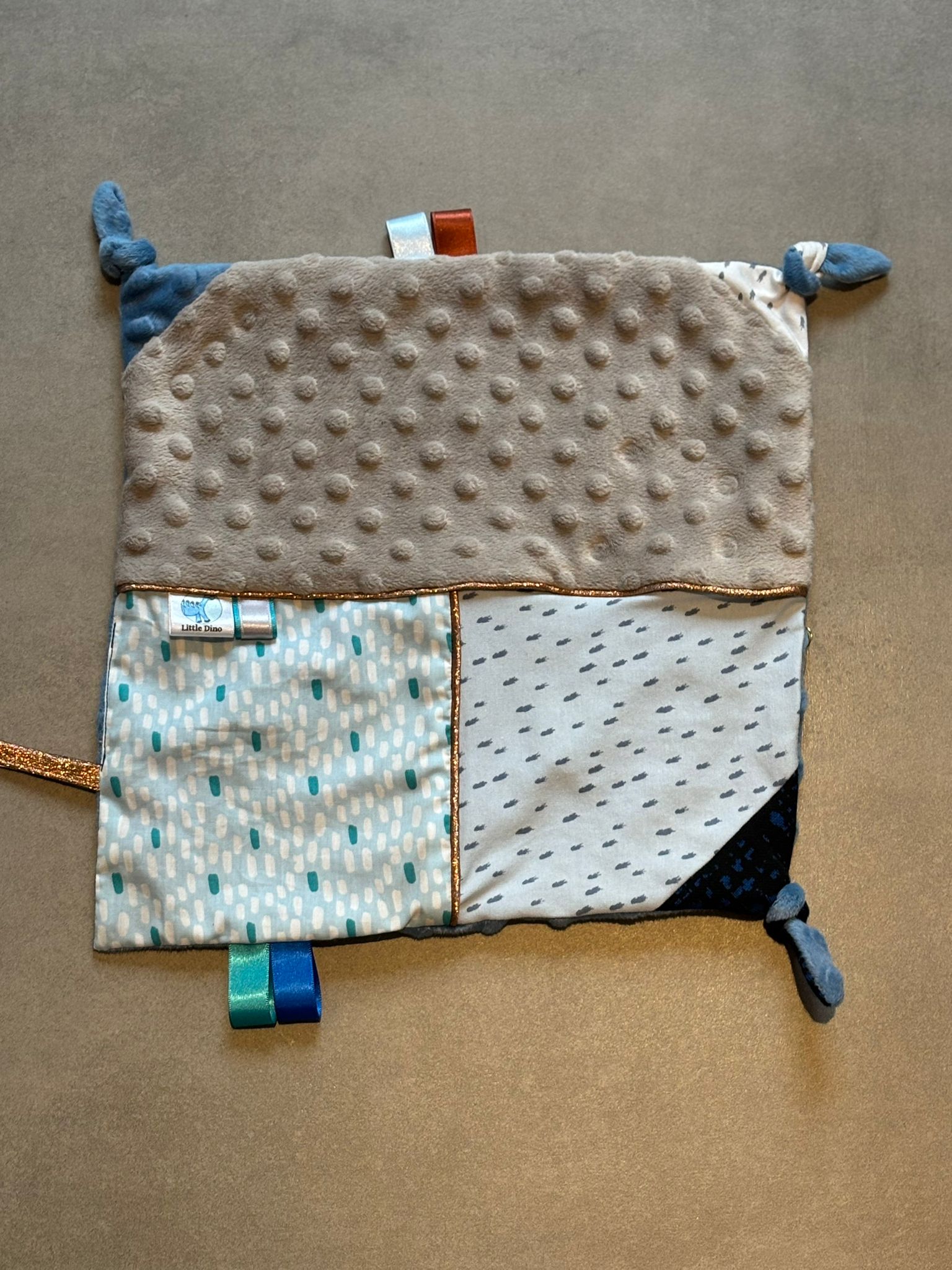 Doudou carré OEKO-TEX® – Nuages bleus & douceur sablée