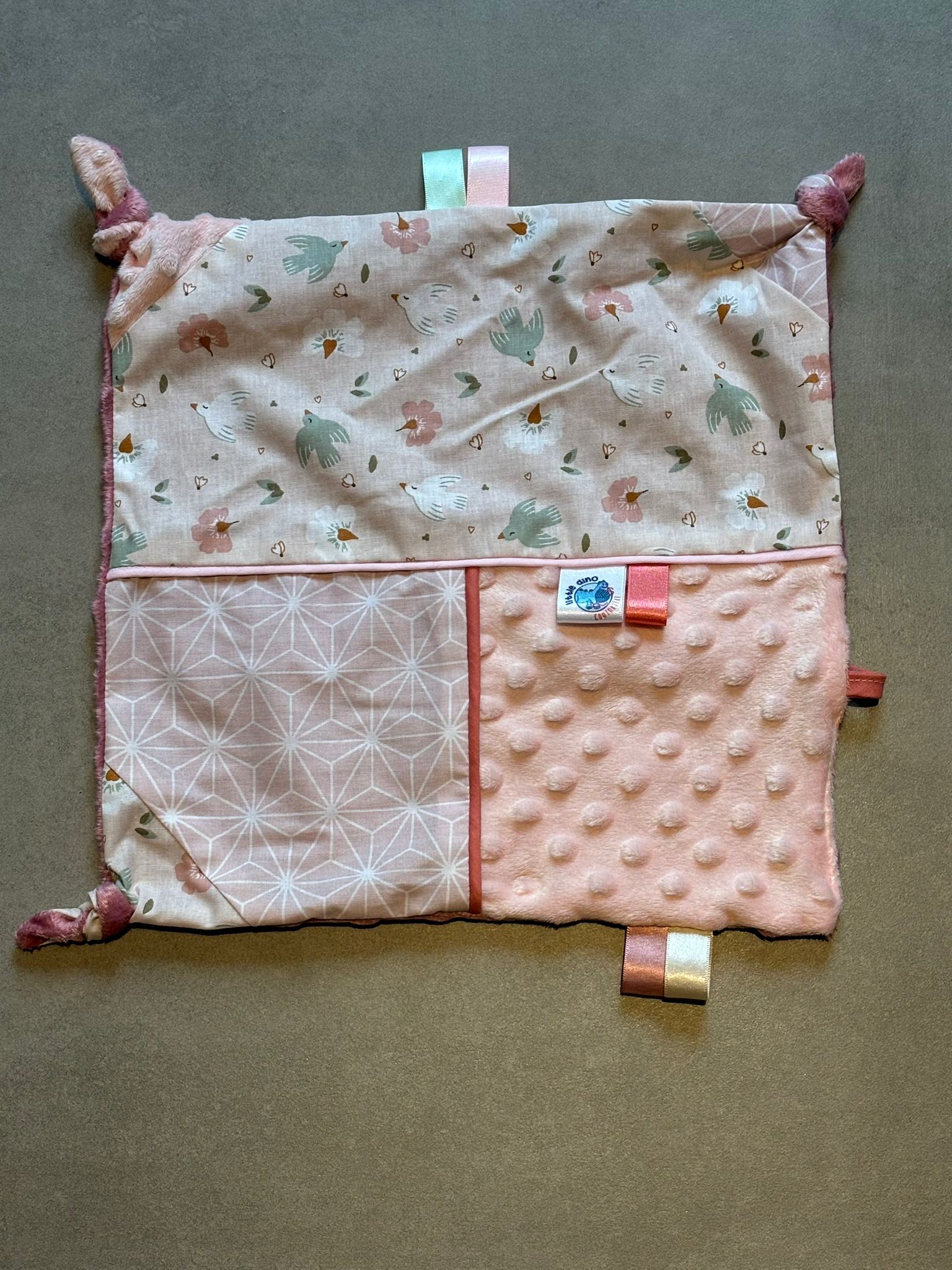 Doudou carré OEKO-TEX® – Oiseaux pastel & douceur poudre