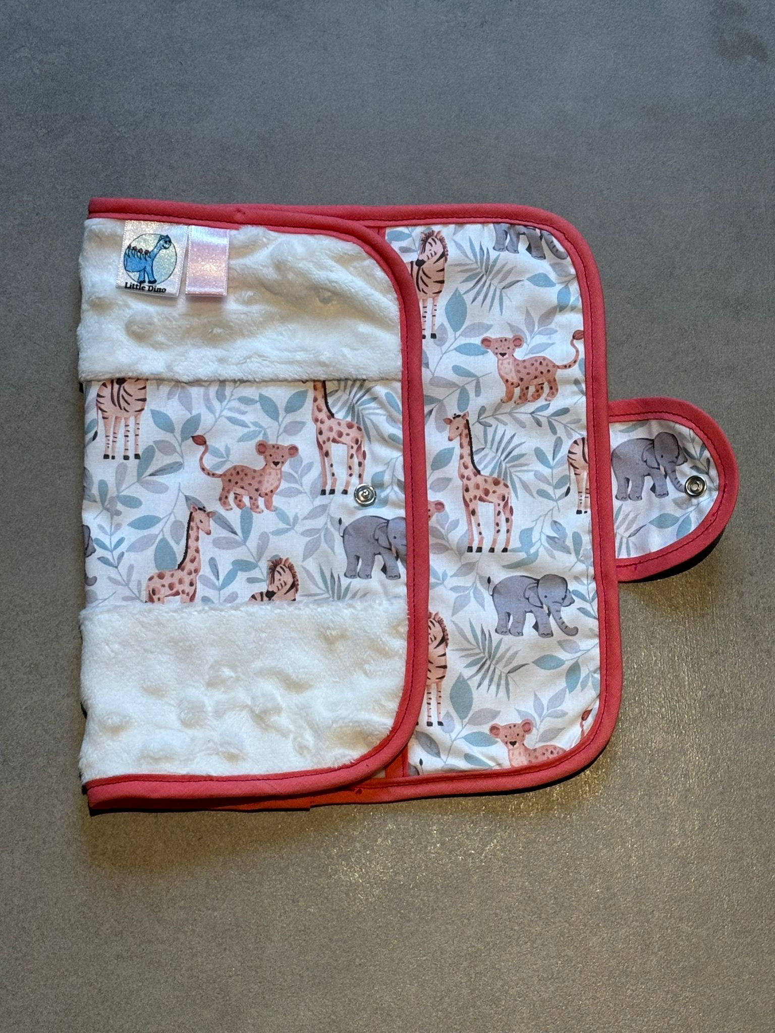 Protège carnet OEKO-TEX® – Safari pastel & Minky blanc