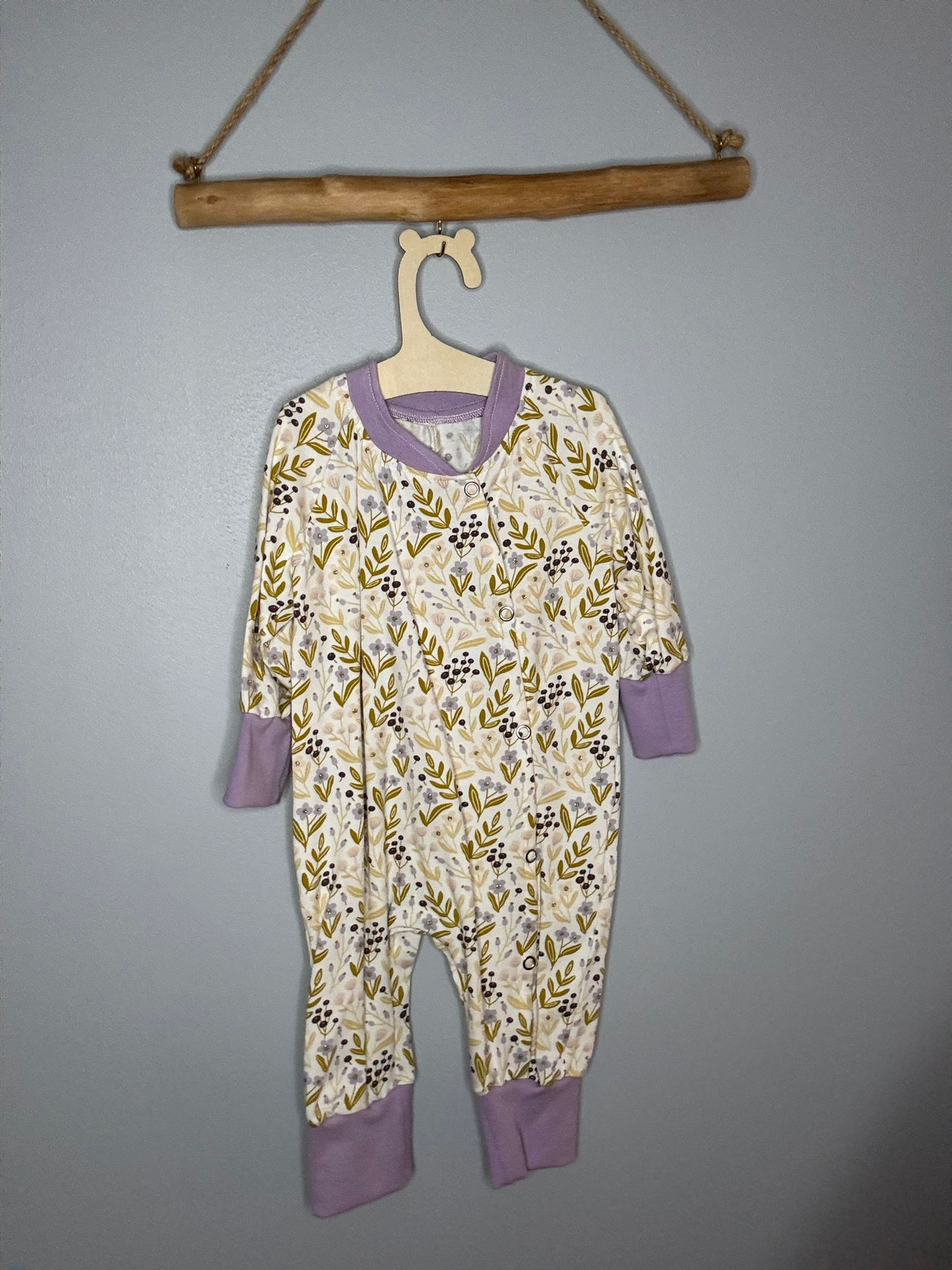 Pyjama OEKO-TEX® – Feuillage olive et baies prune
