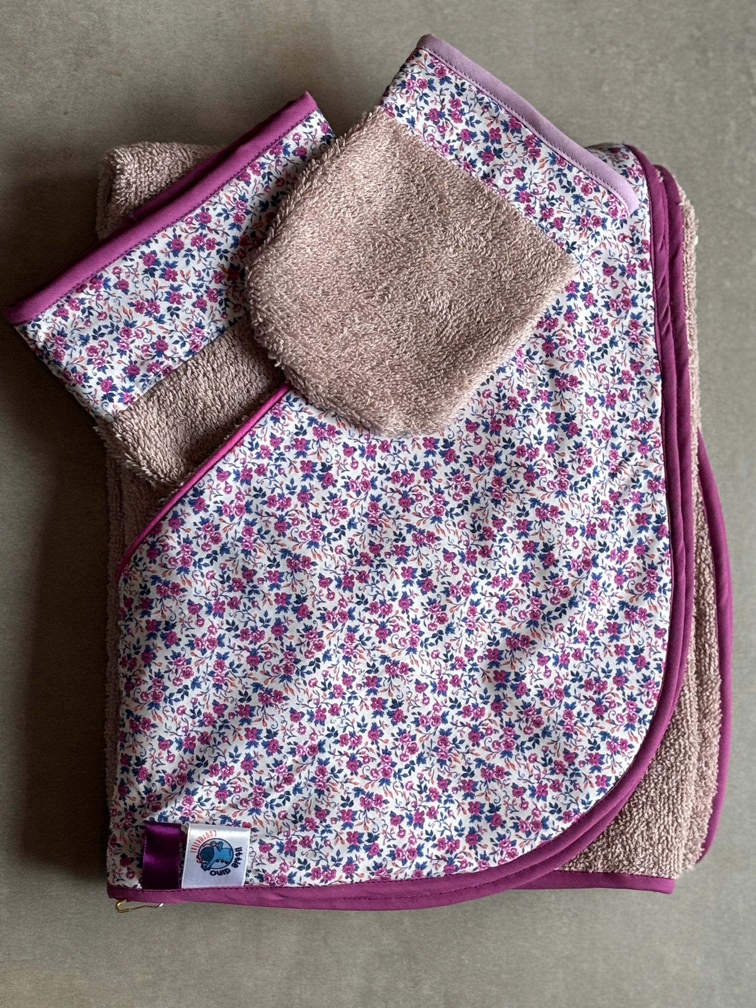 Sortie de bain OEKO-TEX® – Motif fleuri violet & fuchsia